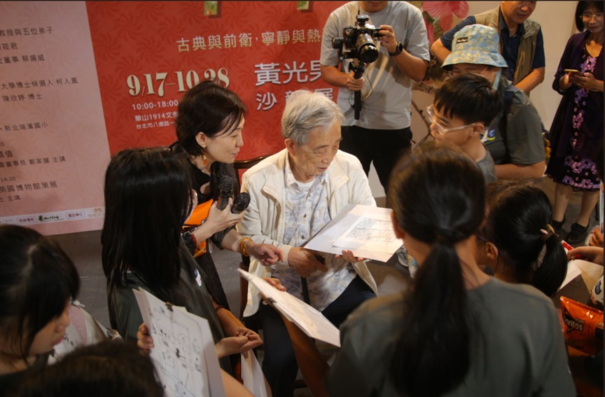 82 歲的黃光男的展覽場藝術,不只是藝術家的成就,更是一座跨世代的橋樑。孩子們在作品前瞪大眼睛、充滿驚嘆;而黃館長用童年的故事,溫柔而喜悅地對話新一代。「窗外的枝葉,藏著童年的雀鳴與柿紅;畫裡的光影,安放了歲月的思念與寧靜。」孩子們背著小書包離開時,笑聲與館長的話語,仍在展廳裡回蕩。這份溫柔中裡帶著熱烈,就像藝術的模樣,永遠在黃爺爺後青春的「寧靜與熱烈」之間閃閃發光。