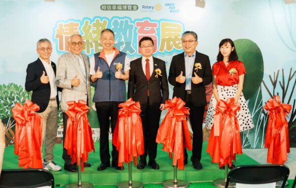 ▲10/9情緒教育展開幕剪綵儀式-(左三)扶輪3522地區總監、(右三)衛福部呂建德次長、(右二)心理健康司陳柏熹司長、(右一)許淑華議員。(圖/國際扶輪3522地區提供)