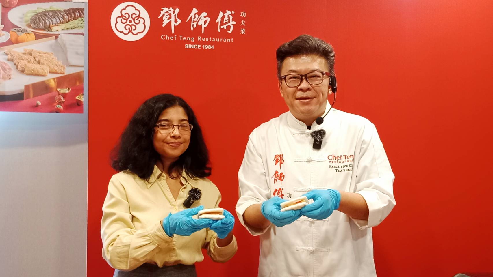 為展現台菜年菜的國際魅力,鄧師傅功夫菜18日年菜發表記者會現場打造跨文化台式年菜體驗,來自加拿大、南非、希臘、俄羅斯等國的6位文藻外語大學國際學生圍坐體驗台灣經典年菜與春節圍爐文化,品嘗經典人氣的鄧師傅功夫年菜。第一次品嘗台式年菜的國際學生,不僅對於豐富澎派的年菜料理大讚「好呷」,更對於圍爐團聚與透過年菜表達祝福的飲食文化感到印象深刻,透過這次的年菜體驗,提前感受感受台灣人的熱情款待與熱鬧溫暖的年節喜慶氛圍。