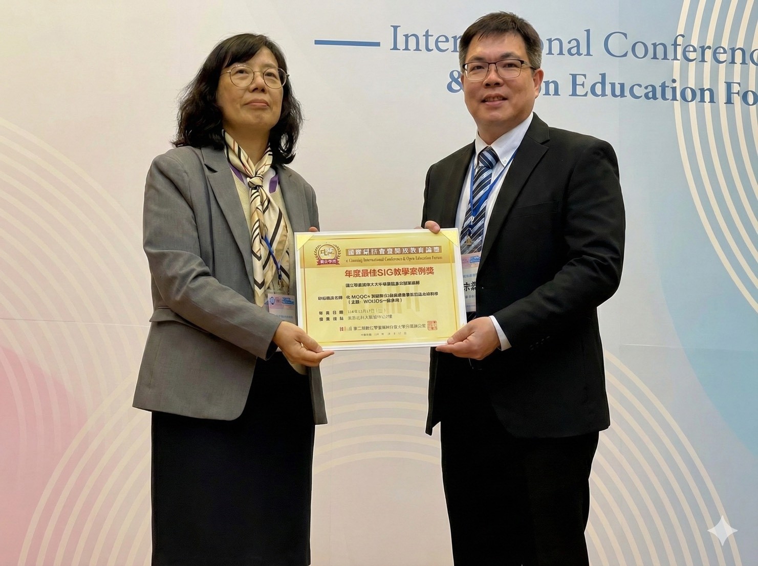 在教學成果方面,「年度最佳SIG教學案例獎」由中餐廚藝系許榮麟老師規劃的「綠色環保廚房」課程奪得。該課程結合永續理念與數位教學設計,透過高品質影音內容與完整課程架構,成功將實作導向的餐飲專業轉化為具深度與吸引力的線上課程,獲得評審高度肯定。