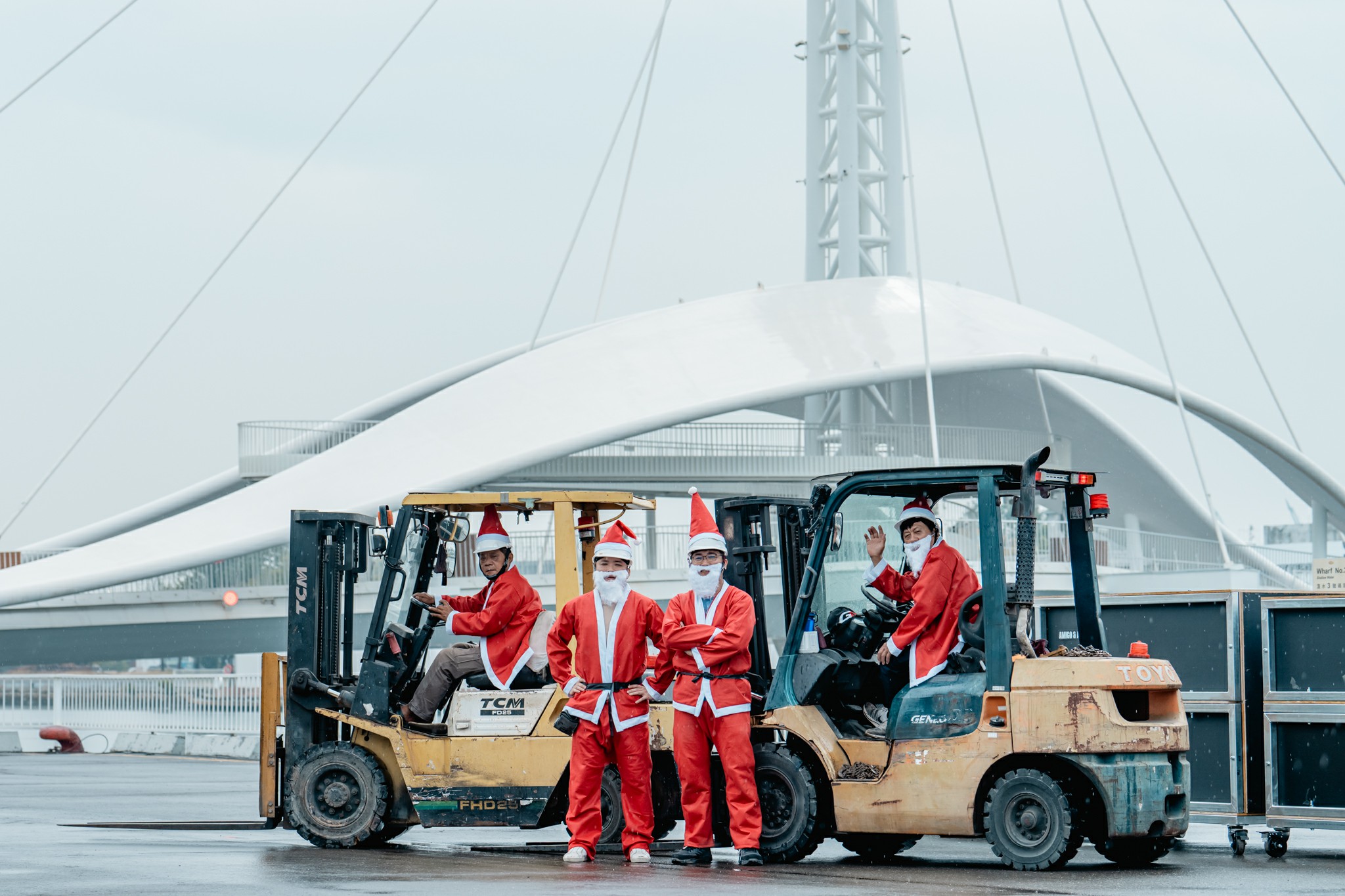 ↑圖說:駁二藝術特區邀請「聖誕老公公」開貨車及堆高機將作品送達,作為送給高雄的聖誕禮物。(圖片來源:駁二藝術特區提供)