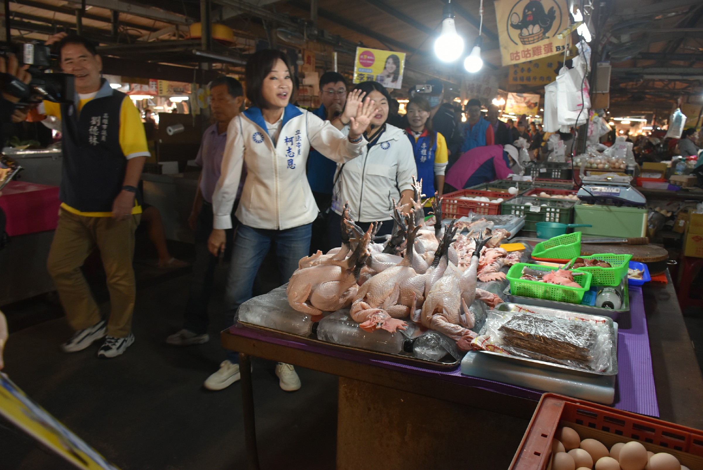 ↑圖說:柯志恩至鳳山工協市場向攤商與鄉親問好。(圖片來源:記者 韓文明 拍攝)