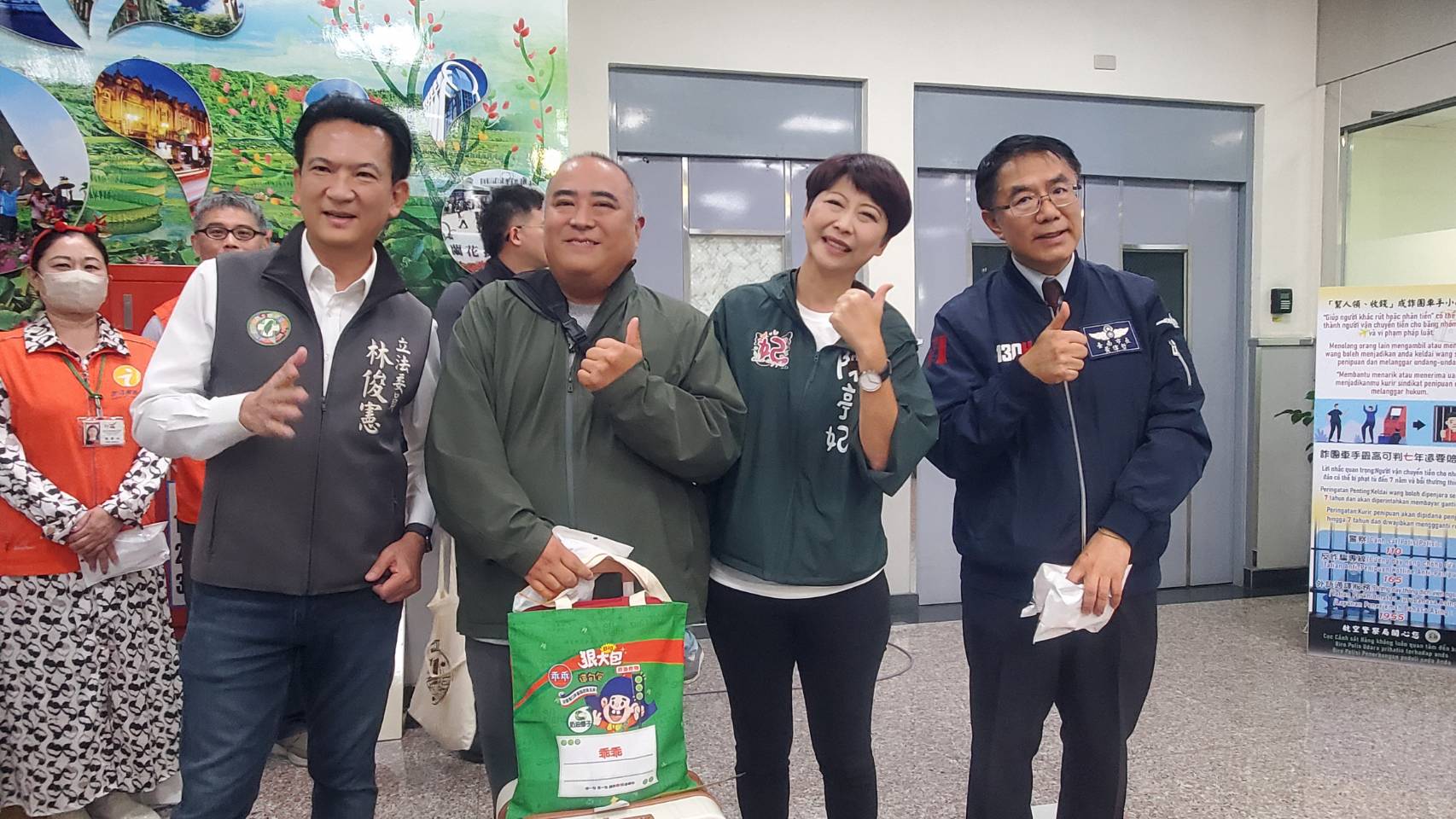↑圖說:台南市長黃偉哲與地方民代迎接首批抵達台南的旅客,見證台南國際航網再添新頁。(圖片來源:台南觀旅局提供)