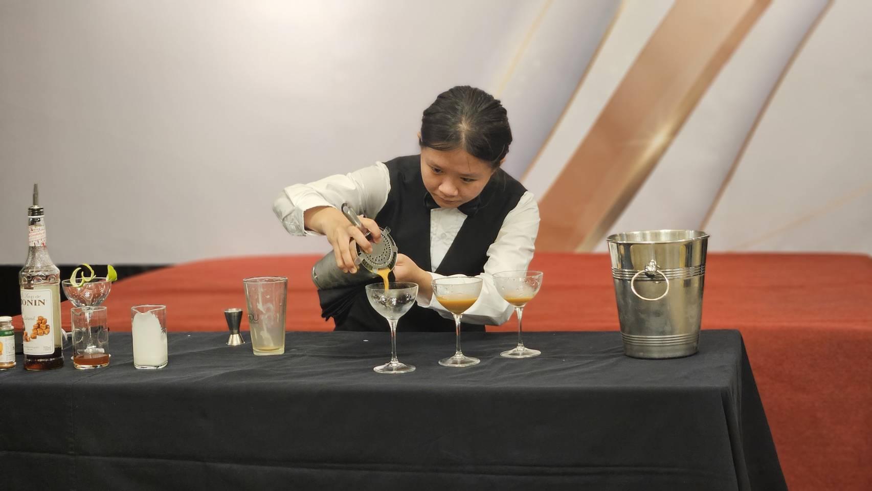 ↑圖說:年僅15歲蕭苡晴穩健台風贏得無酒精傳統調飲組金牌(圖片來源:記者 賴君欣 拍攝)