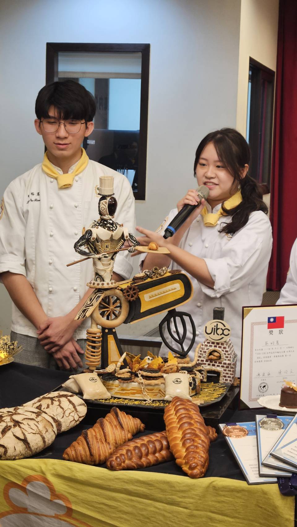 ↑圖說:高餐大烘焙系實力堅強,林裕憲同學(左)將代表台灣參加世界技能競賽。(圖片來源:記者 賴君欣 拍攝)