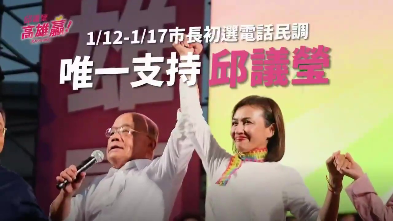 民進黨高雄市長初選進入最後關鍵階段,立委邱議瑩30日一口氣推出三支最新催票影片,分別由前行政院長蘇貞昌、高雄市長陳其邁及邱議瑩本人獻聲,透過影像訴求支持者在一月十二日至十七日電話民調期間「顧好電話」,明確表達唯一支持邱議瑩,力拚讓高雄持續前進、繼續贏。