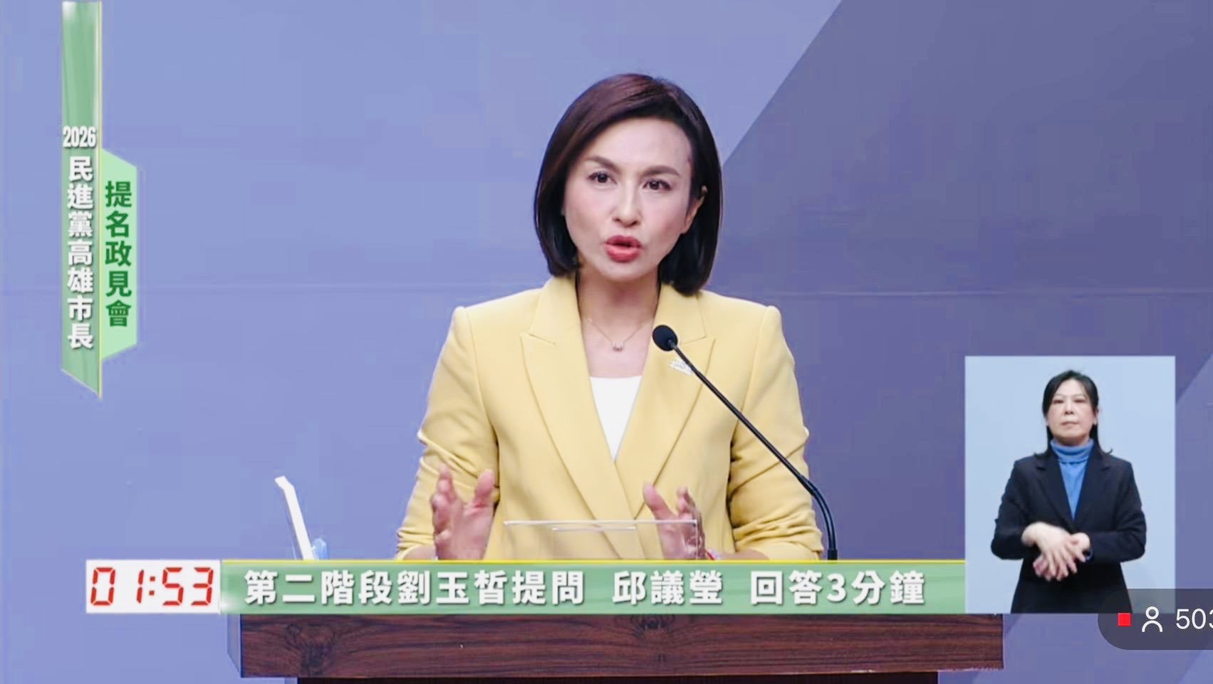 圖說:綠營高雄初選政見會參選人交鋒 邱議瑩口條清晰、台風穩健。(圖片來源:邱議瑩團隊提供)