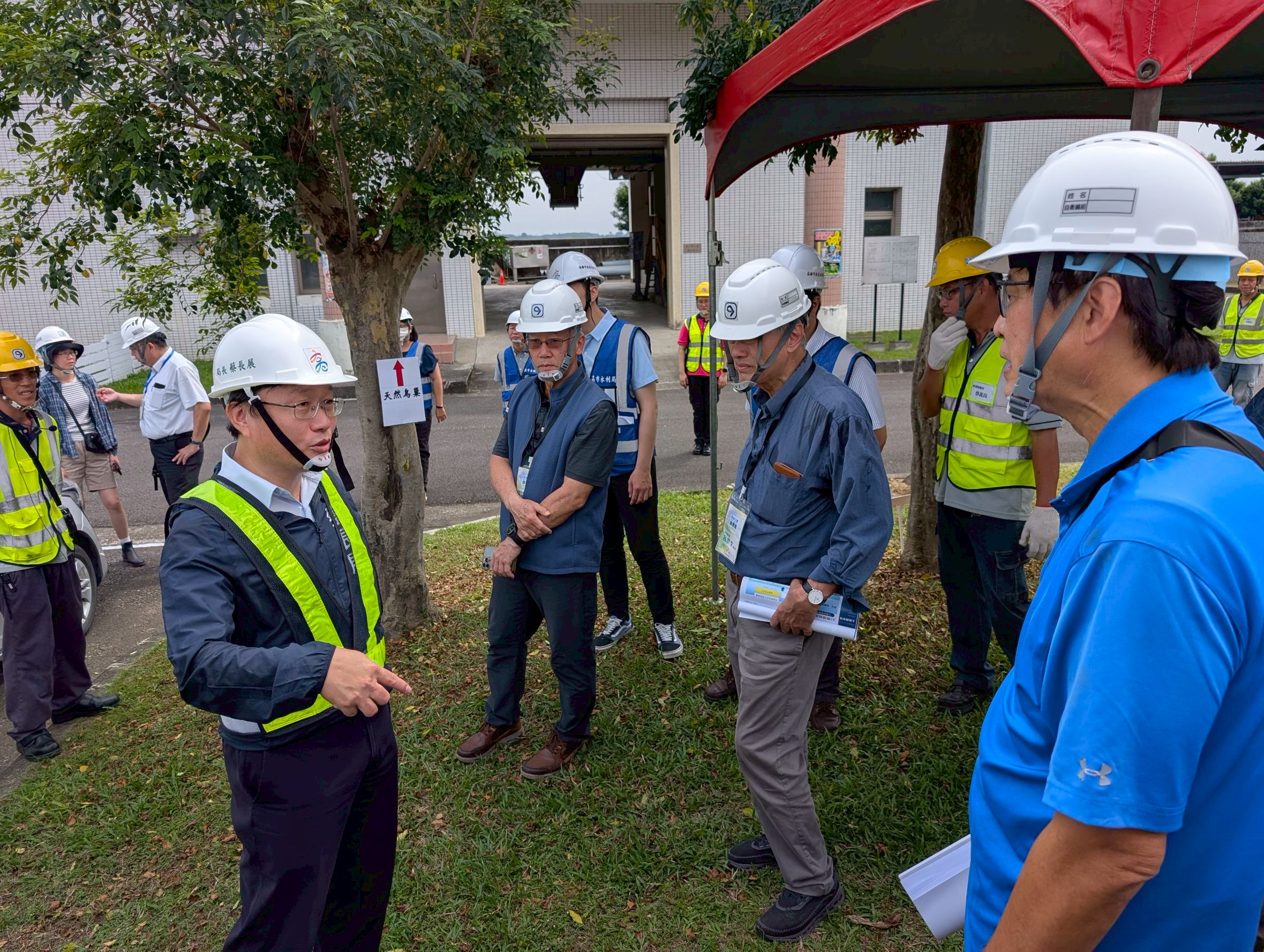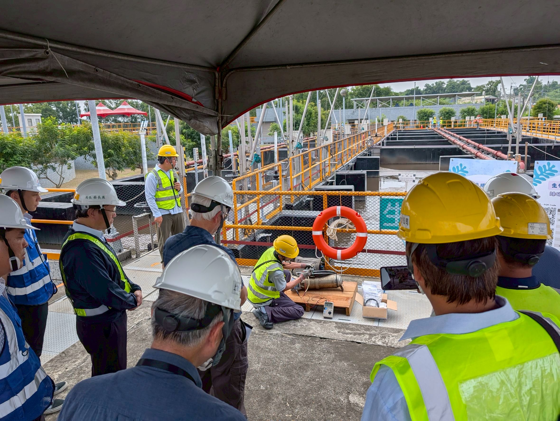 ↑圖說:金質獎評比委員到大樹污水處理廠實地考評。(圖片來源:高雄市水利局提供)