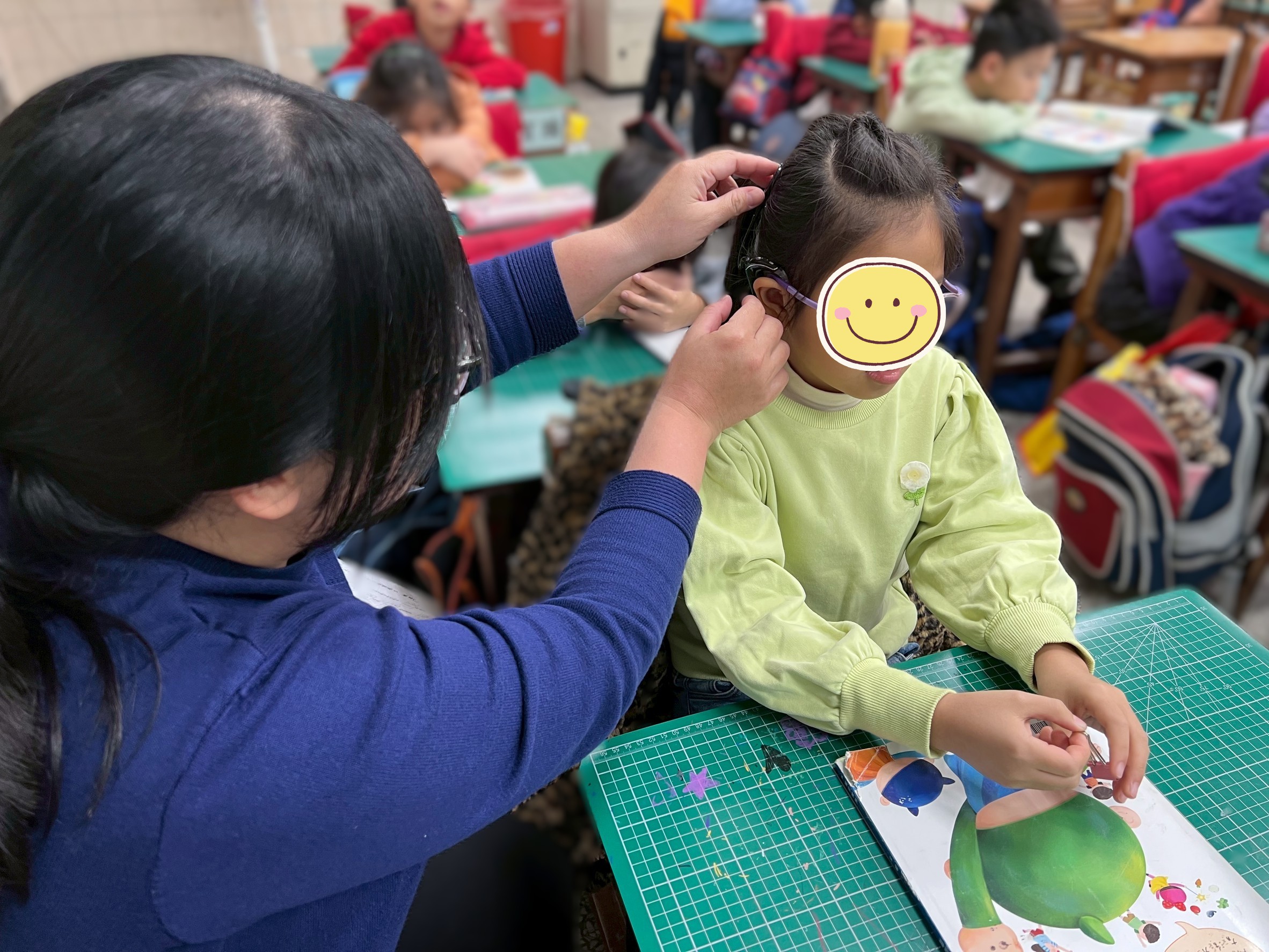 ↑圖說:殊教育助理人員協助普通班聽障生上課。(圖片來源:嘉義市教育處提供)