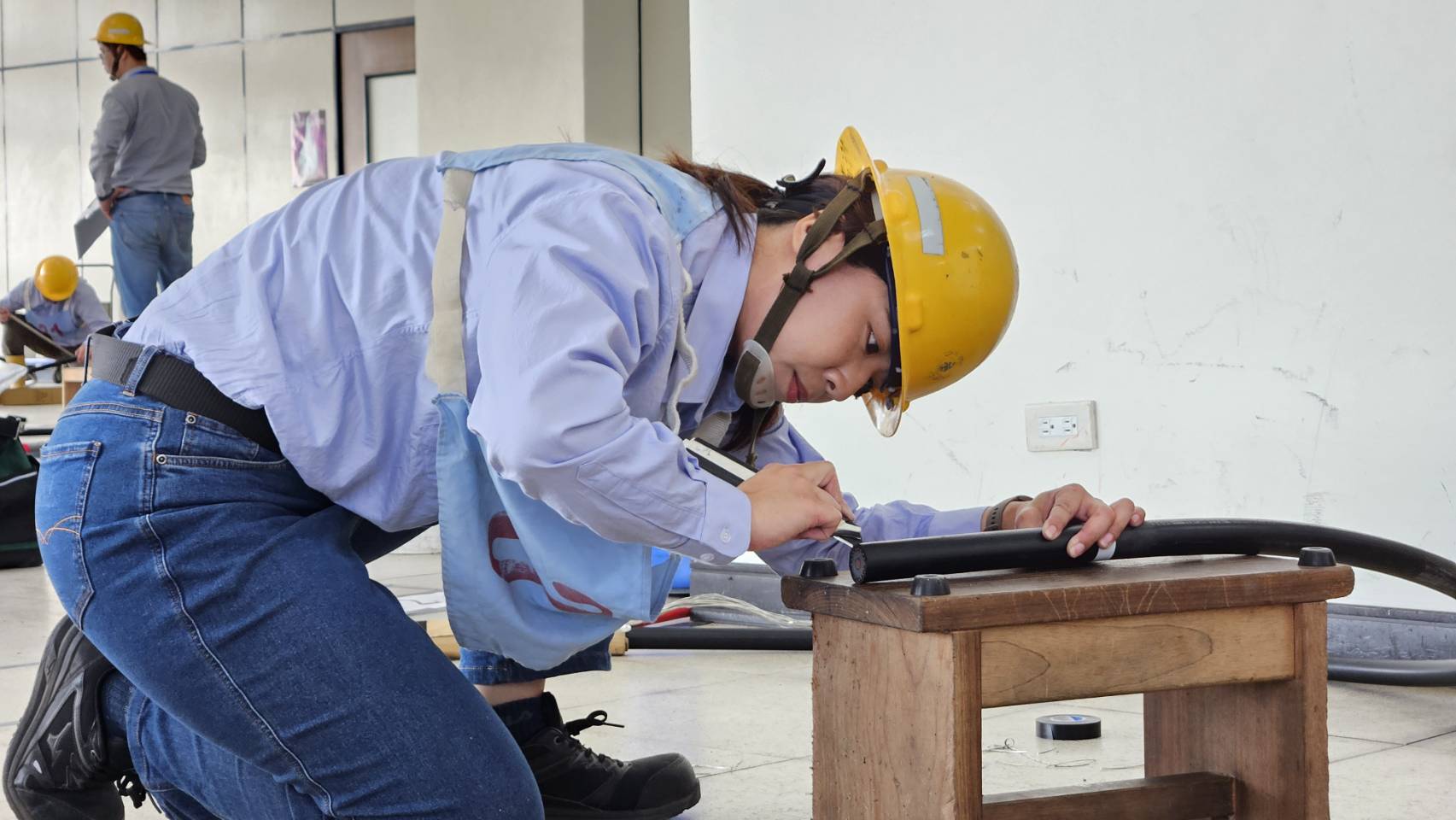 本屆首創的「BoB表演示範賽」選定「配電地下電纜類」作為競賽項目,模擬實際停電事故中電纜與接頭更換作業。參賽選手須在限定時間內,將多達6層、寬約3公分的電纜逐層剝除,完成接頭安裝、壓接與絕緣防水包覆等程序,不僅考驗操作精準度,更挑戰手速與穩定性,實際施作品質攸關供電穩定與用電安全。