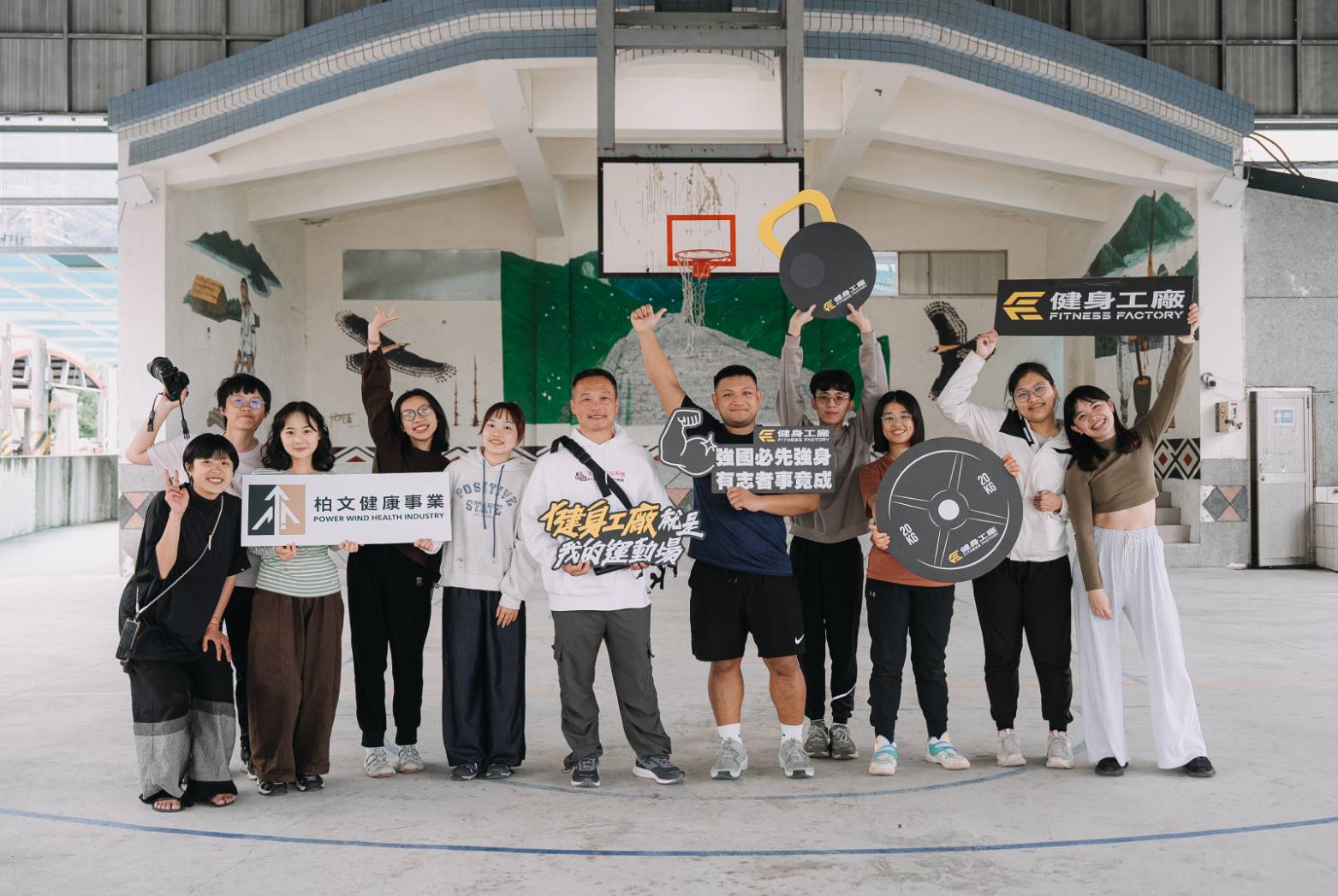圖說:(右五)健身工廠老師石翊群與方信淵老師(左五),青年行動與企業責任的結合。