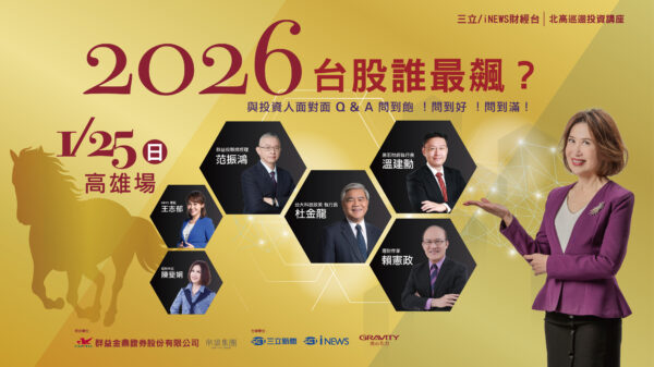 三立iNEWS財經台首度舉辦的「2026台股誰最飆?」北高巡迴論壇,高雄場特別邀請台股大師杜金龍、股市憲哥賴憲政、黑石財經執行長溫建勳、及群益總經理范振鴻替投資人研擬投資攻略,贏驫股,讓你滿滿大收穫!
