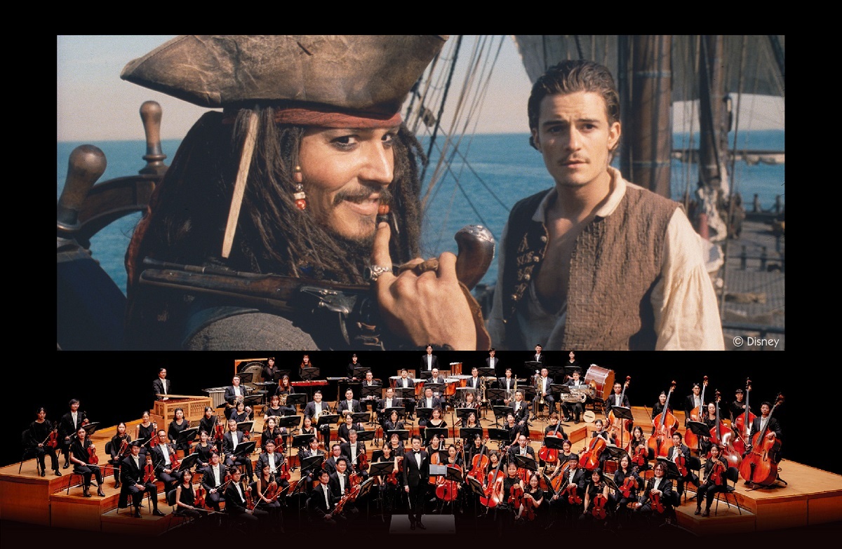 由Disney Concerts製作並授權的《加勒比海盜:神鬼奇航—鬼盜船魔咒》,為系列首部曲,電影上映至今已23年,仍是影史最具代表性的冒險鉅作之一。影片改編自迪士尼樂園經典遊樂設施,由強尼・戴普塑造出極具魅力的傑克・史派羅船長,搭配奧蘭多・布魯與綺拉・奈特莉的精采演出,以及金獎影帝傑佛瑞・洛許等實力派卡司,奠定其傳奇地位。該片不僅在票房與口碑上締造佳績,也獲得奧斯卡金像獎®多項提名,並於國際影壇屢獲肯定,成為史上最賣座的海盜電影之一。