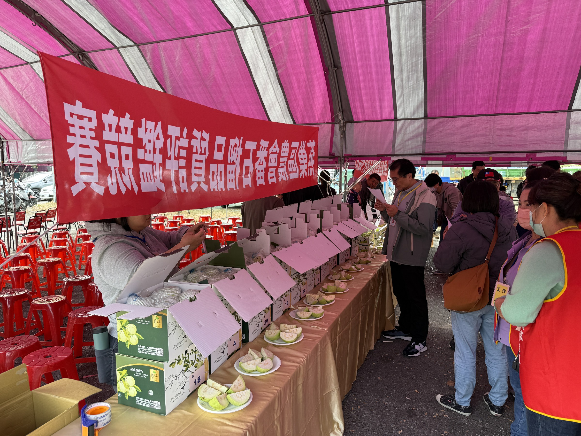 ↑圖說:番石榴及蜜棗品質評鑑競賽現場評鑑情形。(圖片來源:高雄市農業局提供)