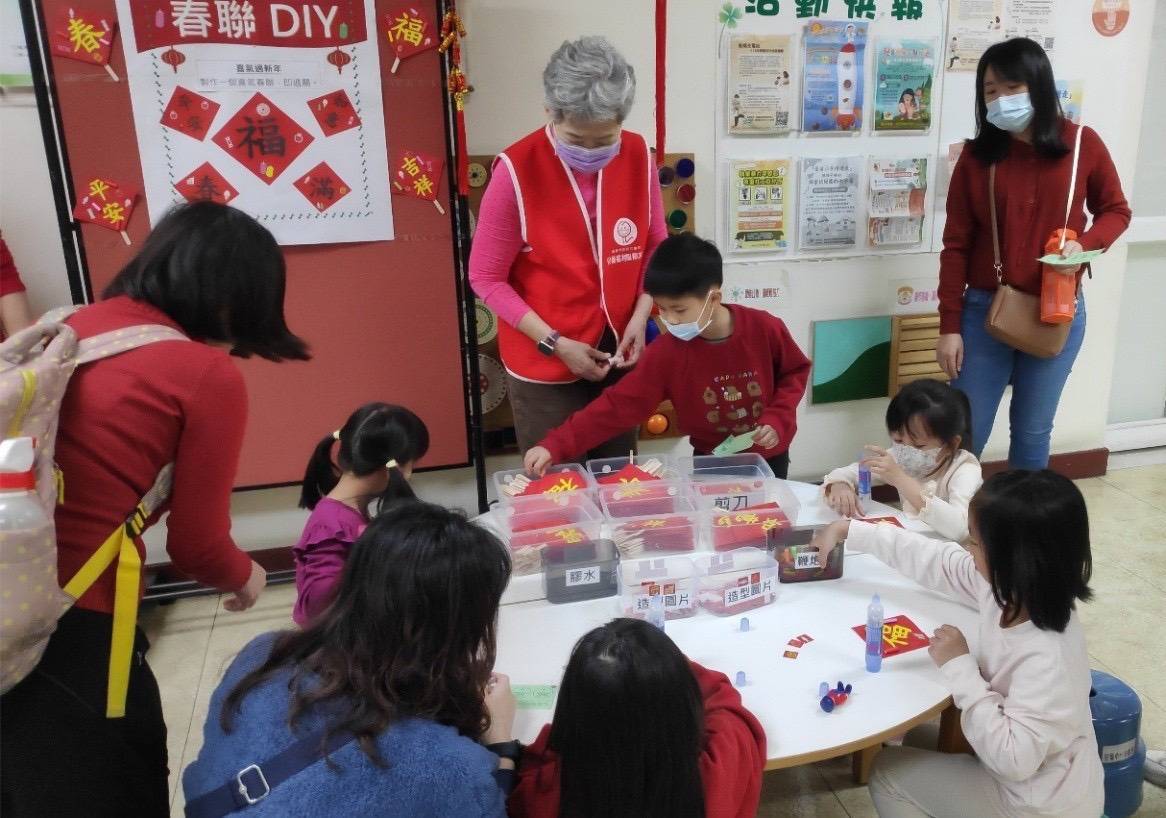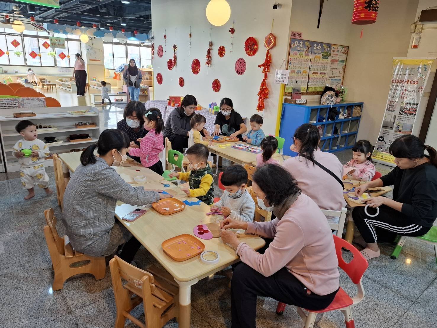 ↑圖說:大小朋友一起到小港親子館製作春節藝術作品。(圖片來源:高雄市社會局提供)
