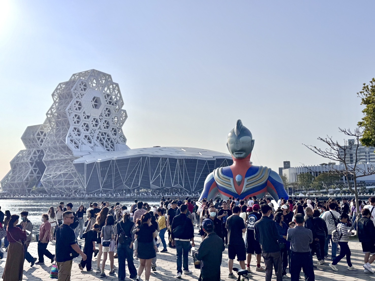 ↑圖說:超人力霸王降臨港都愛河灣,現場吸引滿滿人潮。(圖片來源:高雄市觀光局提供)