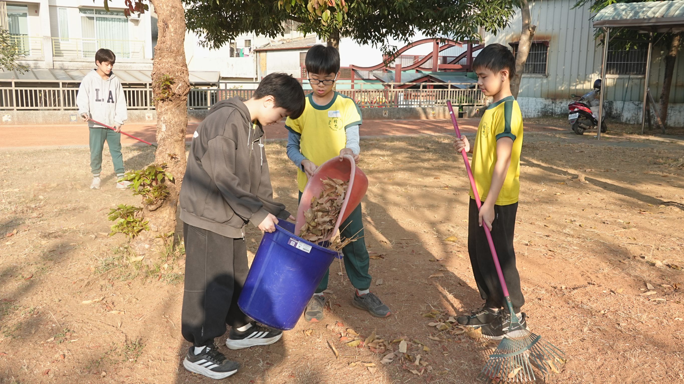 ↑圖說:學童返校打掃,為新學期揭開序幕。(圖片來源:嘉義市教育處提供)