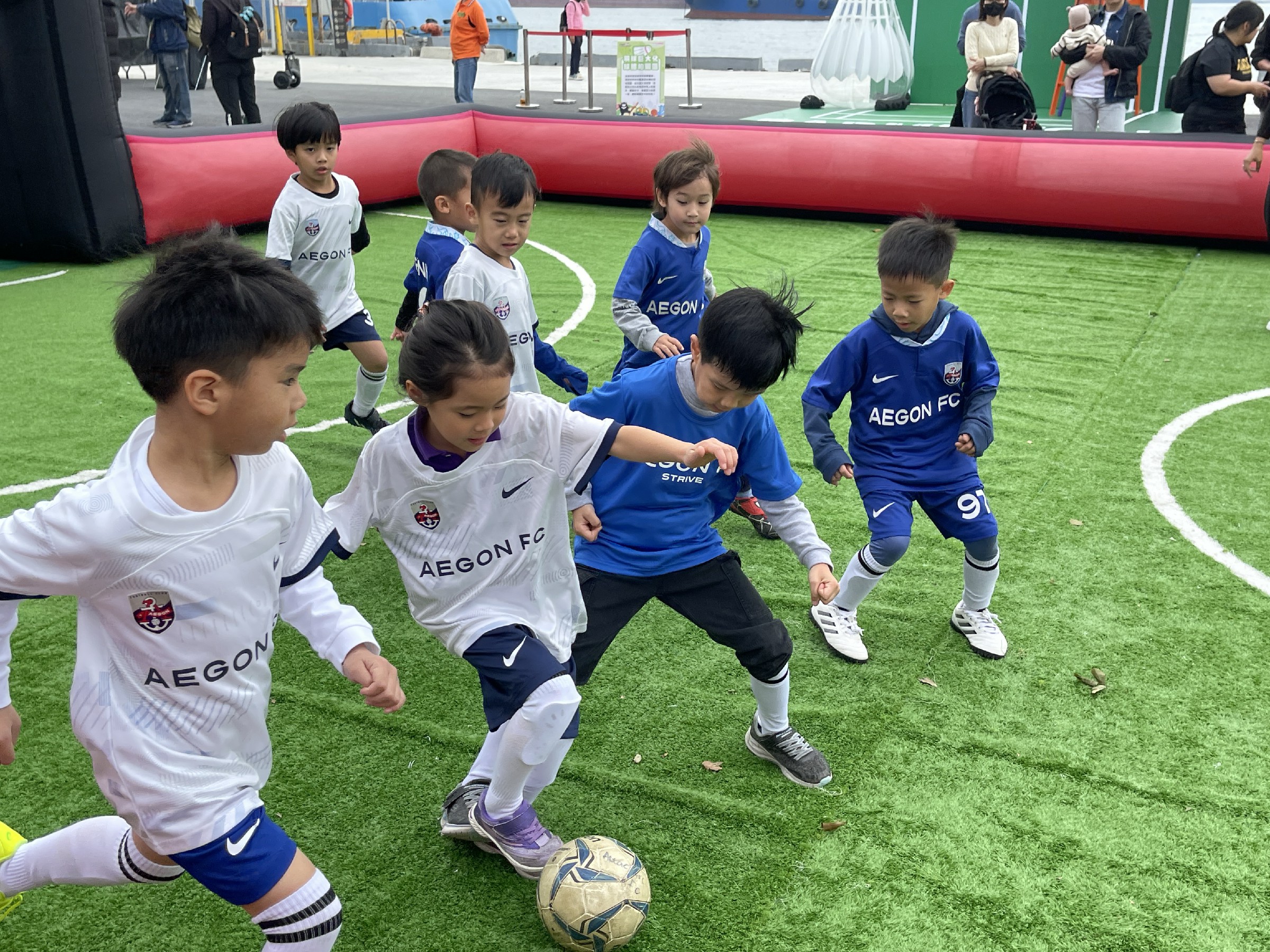 ↑圖說:活動現場規劃迷你足球自由體驗區,讓小朋友盡情揮灑汗水。(圖片來源:高雄市運發局提供)