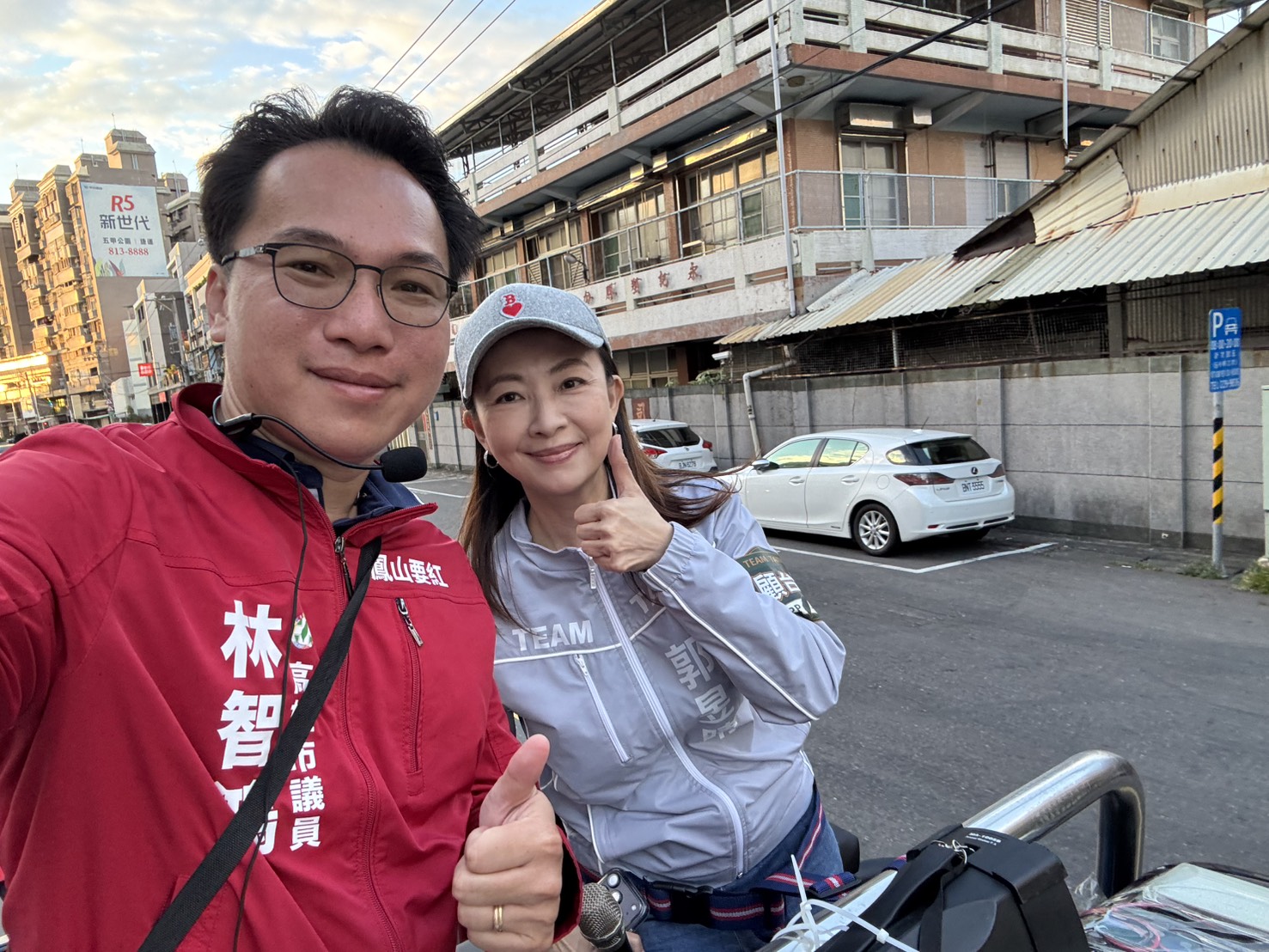 以電視劇角色「萬老師」為人熟知的郭昱晴現身鳳山街頭,受到民眾熱情回應。她表示,自己以藝術工作者、母親及動保倡議者的身分,長期與林智鴻在文化、教育與動物保護議題上合作推動修法與政策。她細數林智鴻在地方爭取老舊校舍改建、打造客家文化據點與特色公園,以及扶助弱勢學童、推動流浪動物認養等具體成果,強調其實踐「生命平權」理念。對於面對政治攻防與市府團隊遭質疑時,林智鴻能直球回應、清楚論述,郭昱晴形容他是兼具專業與勇氣的「鳳山戰將」。