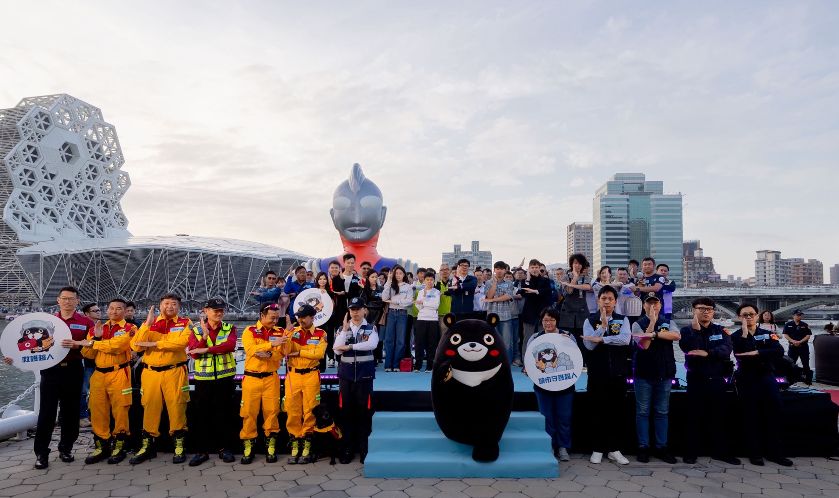 ↑圖說:初代超人力霸王、超人力霸王迪卡於17號碼頭與歌詩達郵輪合影。(圖片來源:高雄市觀光局提供)