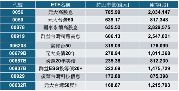 八大官股ETF持股庫存排行