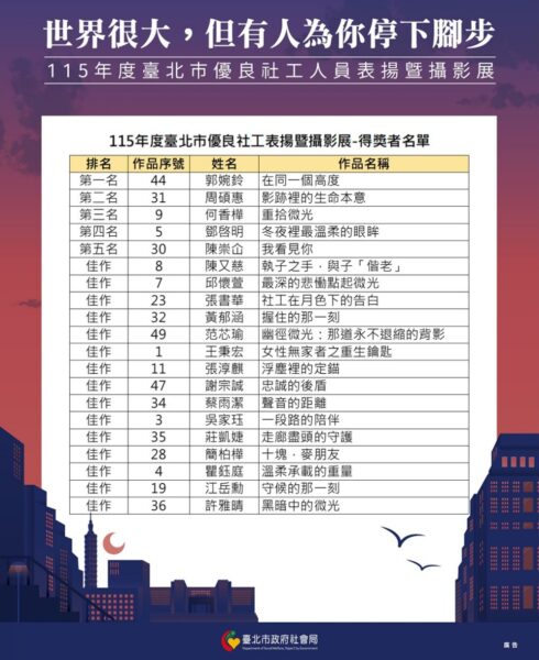 圖:北市優良社工攝影名單揭曉。(圖/臺北市政府)