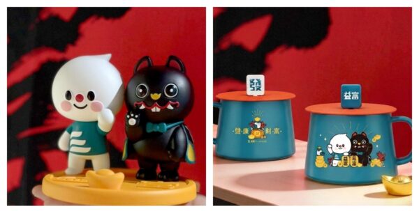 此次聯名推出三款兼具可愛與實用性的限量贈品。「益富 易富馬克杯」以壯壯與黑虎將軍一同比出招財貓般的招財手勢作為主視覺,杯蓋融入麻將「發」字的巧思,象徵「摸了益路發」, 4月1日至5月31日凡購買益富指定系列產品2箱即可獲得;「益富 易富折疊購物車」是日常外出採買的必用神器,除了可愛的壯壯與黑虎將軍,還有聚寶盆、珊瑚與金元寶等招財元素,象徵財氣滿滿,讓日常購物也能,走到哪、富到哪!5月1日至5月31日凡購買益富指定系列產品滿萬元即可獲得;「益富 易富手機座」以壯壯與黑虎將軍共同穩住手機的造型設計,6月1日至6月30日凡購買益富指定品項組包即可獲得,快來蒐集把財富好運帶回家!(贈品數量有限,送完為止)