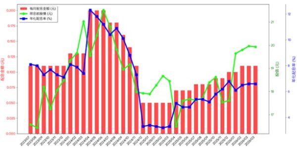 00929 在 2023 年 6 月掛牌後,一開始每月均維持極度穩定的 0.11元月配息,快速獲得廣大投資人的高度認同,緊接著2024 年上半年月配息隨著優異績效表現一路向上衝向 0.2元,年化配息率一度上攀至雙位數的巔峰,但隨著全球科技股劇烈回檔與配息政策的調整,00929開始進入了長達一年多的沈潛期,月配息一度落入 0.05 元的低潮,年化配息率墜落至僅3%,市場一度質疑00929是否已經失去原有光環,然而,這段時間正是00929重新整頓與蓄積修復力的重要時刻,就像是謝征身負重傷化名為「言正」的隱忍時期,重整旗鼓後,00929 終於迎來了屬於它的高光時刻,去年5月起,00929配息重回上升軌道,先是調升至0.07元,8月起連續三次配發0.08 元,11月再調至0.09元,今年1月調升至0.1元,3月更進一步加碼至0.11元,創下逾一年來新高,股價更一度上攀至 20.6 元的近期高點,順著這股「回升韌性」的趨勢,最新4月公告配息再次向上調升至0.13元,較上月暴力升息幅度高達18%,以3月31日收盤價19元計算,年化配息率上衝至8.2%,完全擺貼去年降息低潮,正如謝征重新披上鐵血戰甲,重掌兵權的震撼感,正式宣告「武安侯」的回歸。