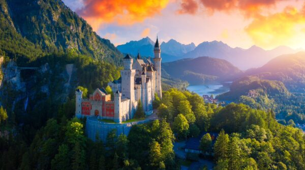德國「新天鵝堡」位於德國巴伐利亞西南部的阿爾卑斯山麓,是19世紀的歷史主義代表作,由路德維希二世國王為實現其夢想而建;其白色大理石外牆、尖塔與湖光山色融為一體,為迪士尼『睡美人』城堡及『天鵝湖』場景的靈感來源,於2025年7月列入世界文化遺產。圖/業者提供