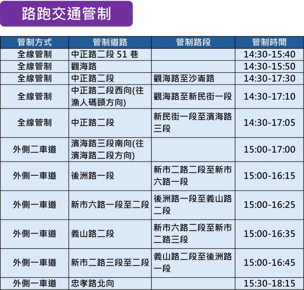 警方指出,本次活動交通管制範圍涵蓋新北市淡水區中正路二段(含周邊巷道)、沙崙路、新市二路(含一、三段)、台2乙線淡金路三段、北8鄉道奎柔山路及八里區忠孝路、博物館路等重要路段,將依活動進行採取分段封閉、車道縮減及彈性放行措施,並設置改道指引牌面,同時於關鍵路口派遣警力及義交加強指揮,以降低交通衝擊並維持行車秩序。