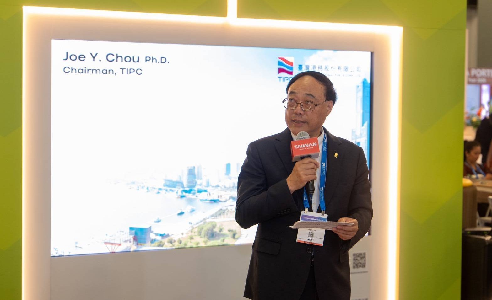 圖說:周永暉向國際郵輪業者介紹臺灣優勢及港埠建設。(圖片來源:臺灣港務公司提供)