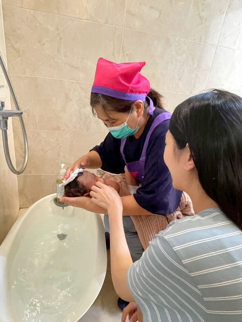 ↑圖說:月嫂化身「育兒導師」,一對一指導新生兒照顧技巧。(圖片來源:高雄市社會局提供)