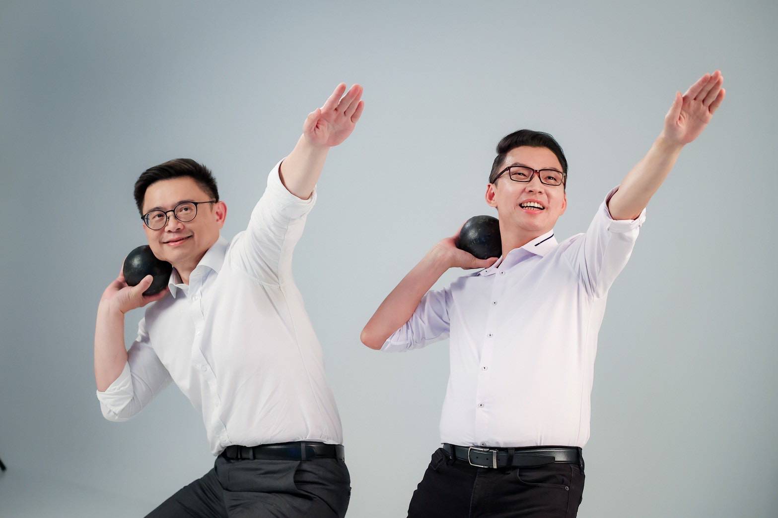 圖說:黃文益(右)與賴瑞隆合擲鉛球架勢十足。(圖片來源:賴瑞隆服務處提供)