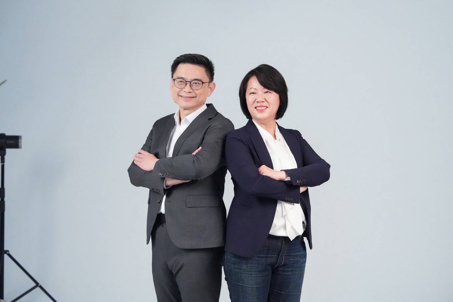圖說:黃秋媖著正裝(右)與賴瑞隆拍定裝照。(圖片來源:賴瑞隆服務處提供)