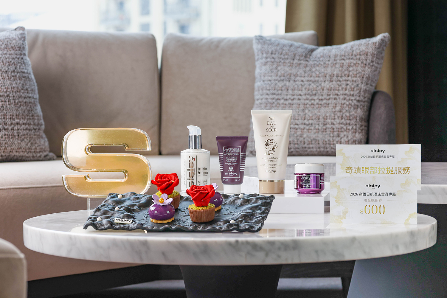 此次合作最大亮點,在於將保養品牌經典元素融入住宿內容。專案贈送總價值逾5,000元的Sisley黑玫瑰旅行組,涵蓋全能乳液、黑玫瑰水凝霜及抗老面膜等明星商品,並附保養禮遇券與現金抵用券,強化旅宿與日常保養的延伸連結。