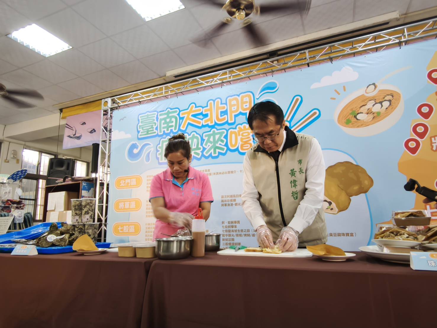 圖說:台南市長黃偉哲現場示範蚵料理,推廣「台南蚵」品牌。(圖片來源/台南市農業局)