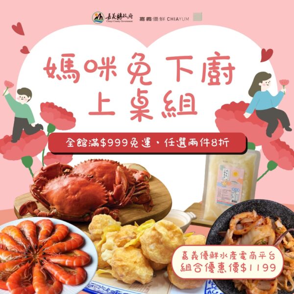 圖:嘉義優鮮水產電商平台推出「媽咪辛苦了 · 回嘉享用優鮮海味」活動 。