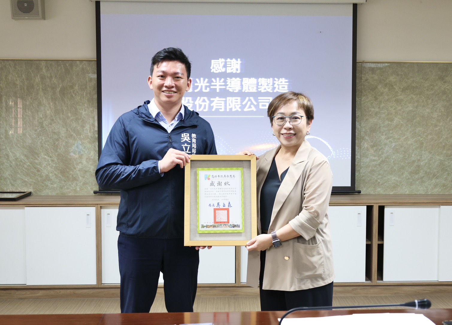 16日於楠梓高中舉辦「高級中等學校師資增能及學生培力計畫合作」說明會,由教育局長吳立森、日月光半導體副總經理李叔霞、財團法人張姚宏影社會福利慈善事業基金會資深部經理才國宗、楠梓高中校長郝靜宜校、三民高中校長楊文堯、高雄女中校長鄭文儀、左營高中校長林百鴻、中山高中校長林香吟等共同出席,並由教育局特頒發感謝狀,感謝支持高市技職教育發展,並提供高中學生多元探索與培育機會。